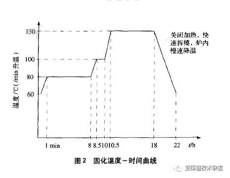 澆注好的模具必需在固化爐內(nèi)依照固化溫度一時(shí)候曲線停止加熱固化。進(jìn)程中,需包管固化爐內(nèi)溫度平均。固化溫度~時(shí)候曲線如圖2所示。