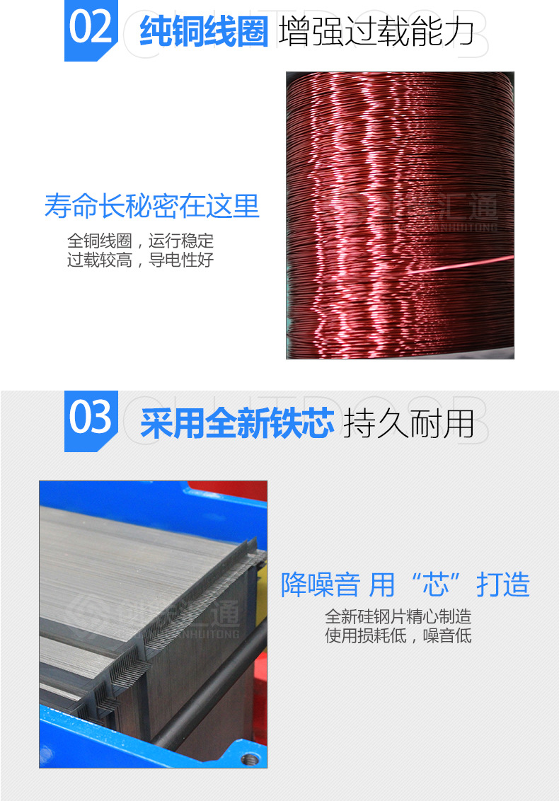 1.變壓器鐵芯采用進(jìn)口 冷軋硅鋼片疊積而成,大大降低空載和空載電流,并對(duì)鐵芯進(jìn)行綁扎,保證鐵芯的緊實(shí)度,降低噪音。